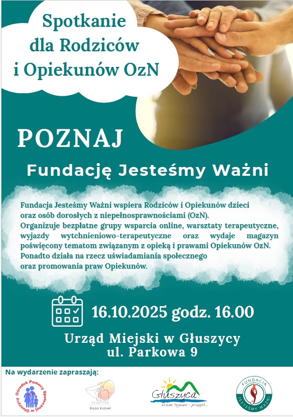 Niniejszym informujemy, że w związku z faktem udziału pracowników Ośrodka Pomocy Społecznej w Głuszycy w warsztatach w dniu 03 października 2025 (piątek) Ośrodek Pomocy Społecznej w Głuszycy czynny jest w godzinach od 7:00 do 10:30.